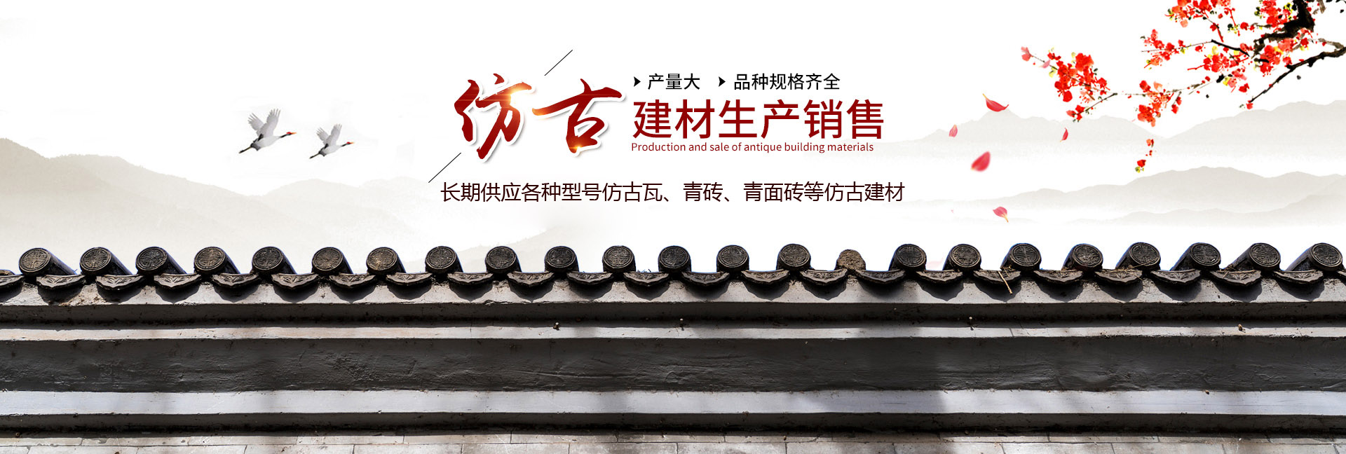 主要產品有板瓦、簡瓦、地磚、面磚、磚雕、貓頭、滴水、三星脊、擋勾、花脊、花檐、窗花、翹腳、正吻等各種古建材。